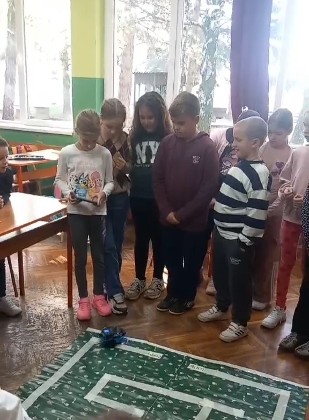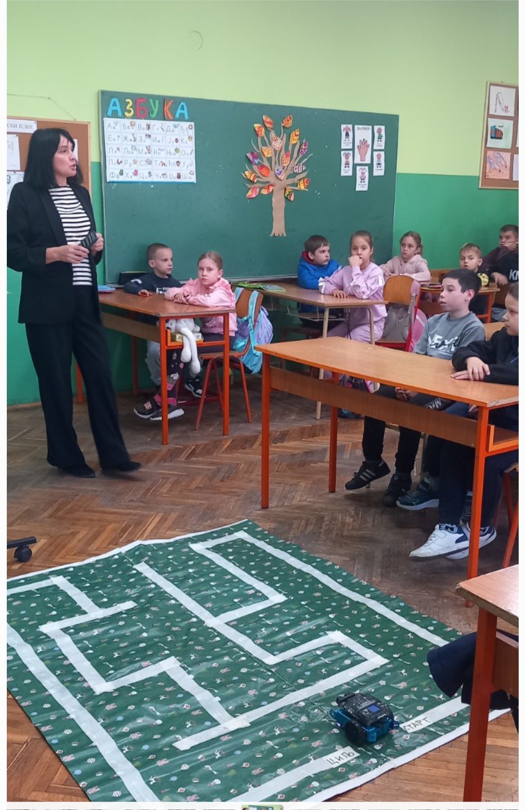 mBot роботи- Ученицима 2. и 4. разреда приказана је презентација о mBot роботима и ручном управљању истим. Сваки ученик је имао прилику да управља роботом на полигону “Лавиринт”.