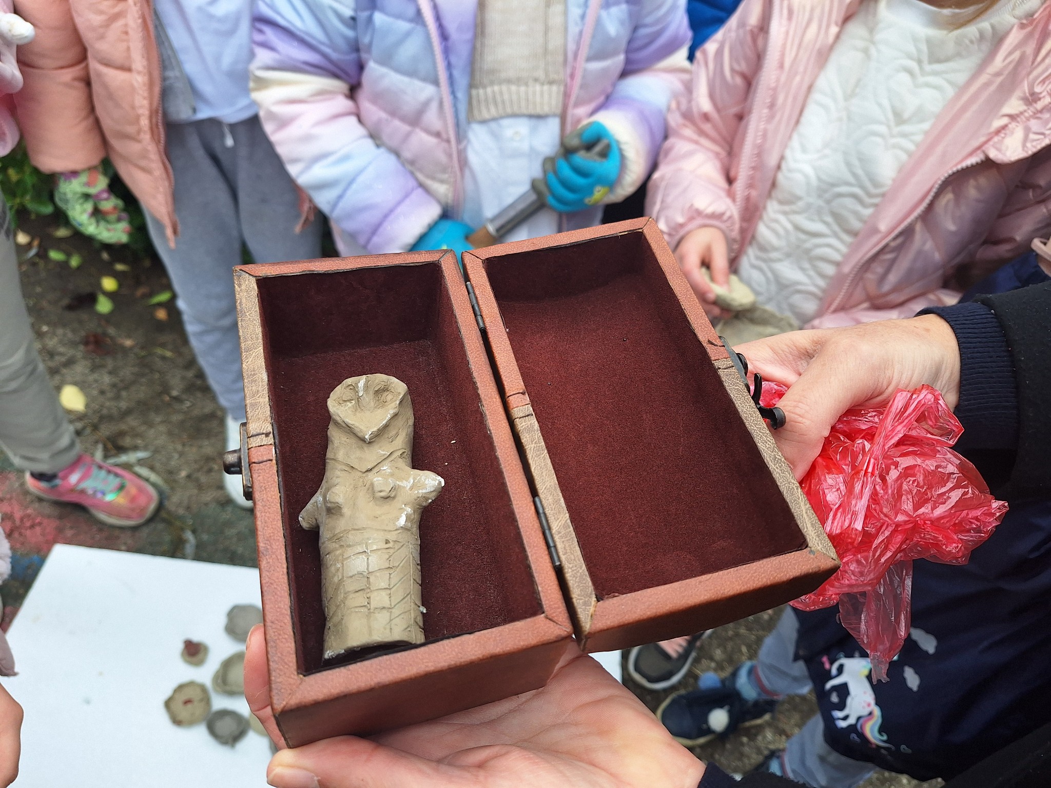 Сакривање фигурица- Ученици 4.разреда свечано предају мапу ученицима другог разреда, који су имали задатак да помоћу мапе сакрију благо(фигурице), које су направили ученици седмог разреда а ученица 2. разреда Jелена Обровац направила је фигуру “Велика мајка”.