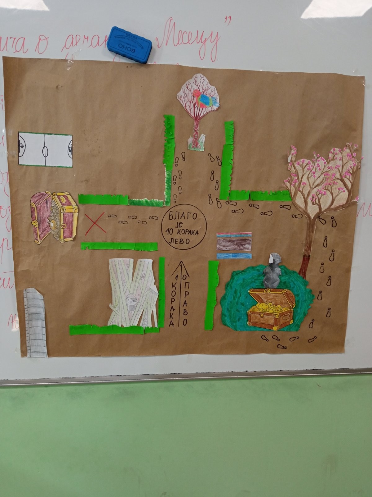 Ученици 4.разреда су добили задатак да осмисле мапу скривеног блага(фигурице) и веома им се свидела идеја што су баш они добили тај задтак, јер никада пре то нису правили. Једва су чекали да почну. Идеја је било пуно и свако је имао своје задужење. Мапу су осмислили и веома успешно урадили.