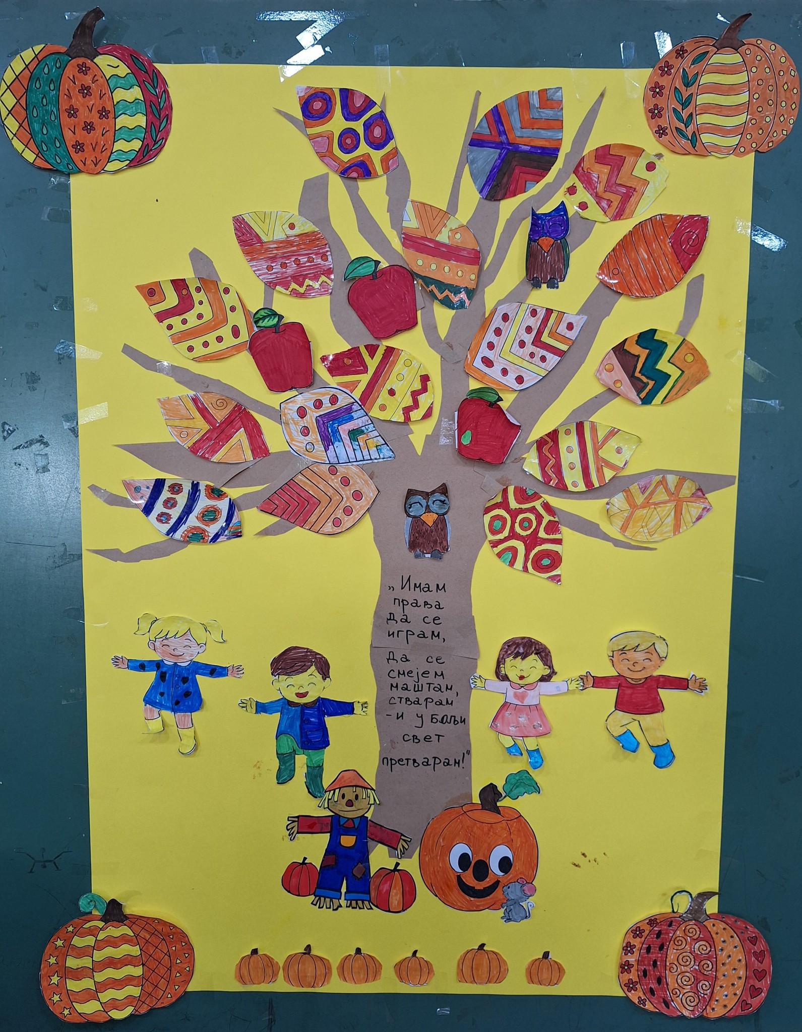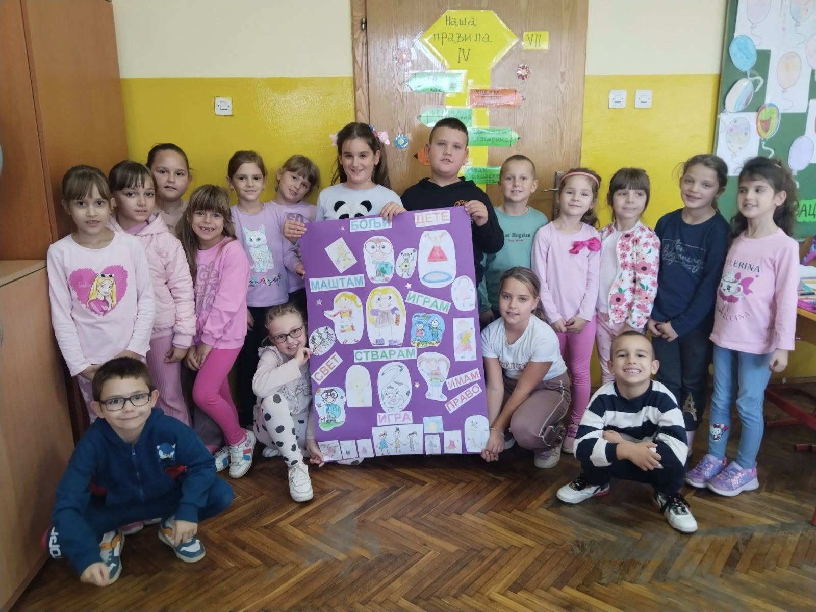Ученици од 1. до 4. разреда су правили паное за своје учионице на тему Дечје недеље: „Имам право да се играм,смејем, маштам, стварам – и у бољи свет претварам!“