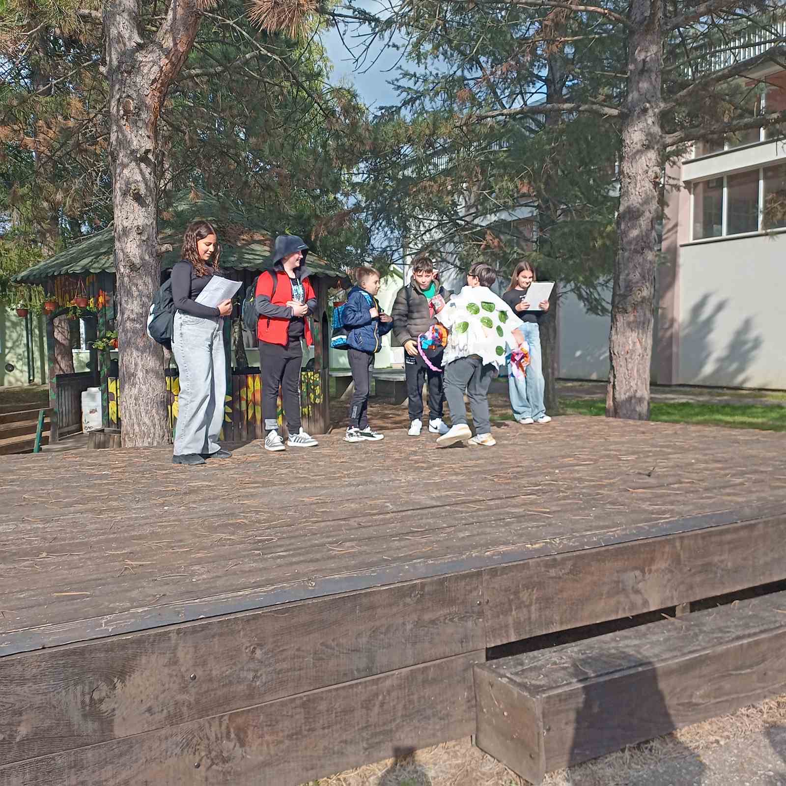 У дворишту школе, на бини, је организована јесења представа енглеског драмског клуба наше школе, под називом “Blown away”. У представи су учествовали ученици виших разреда.